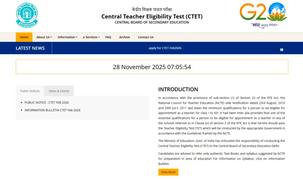 - Home Page पर आपको “PUBLIC NOTICE : CTET FEB 2026” का link दिखाई देगा।