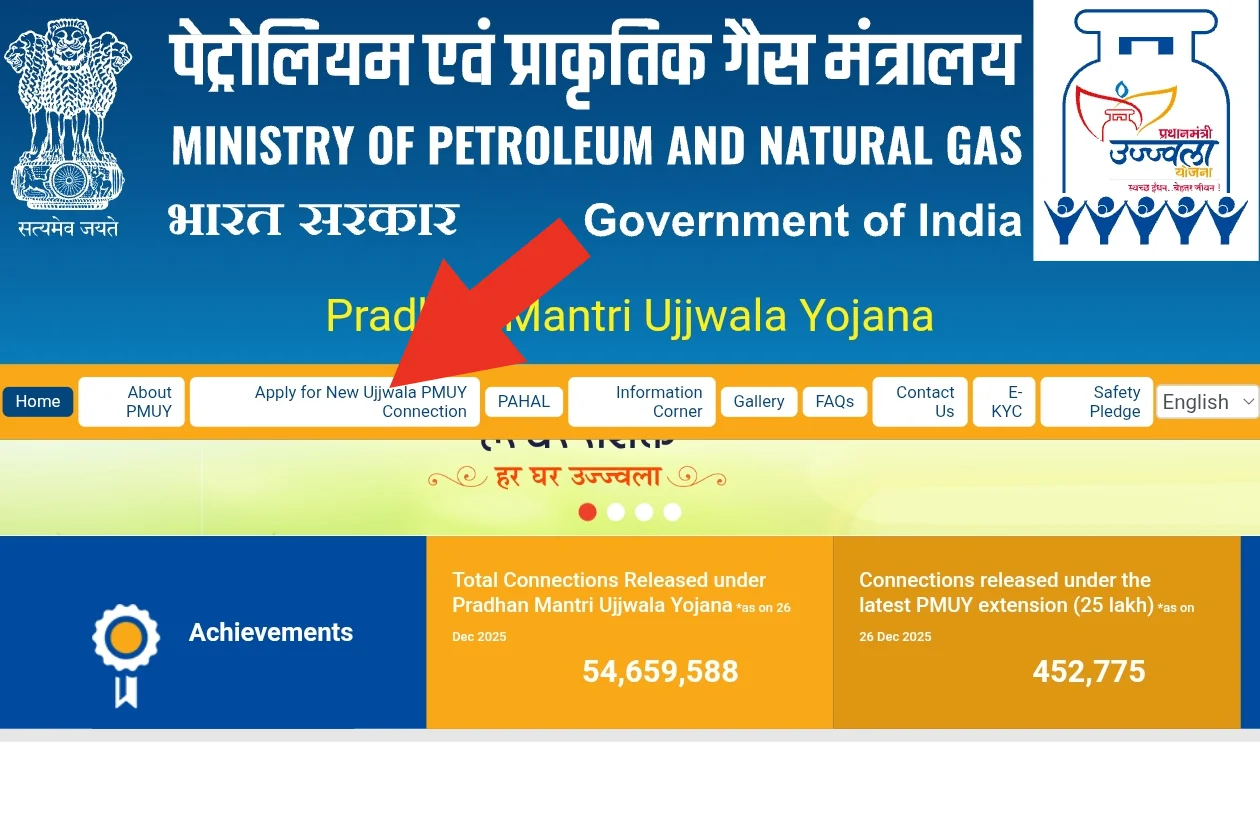 2. Apply for New Connection” पर क्लिक करें। PM Ujjwala Yojana 2026